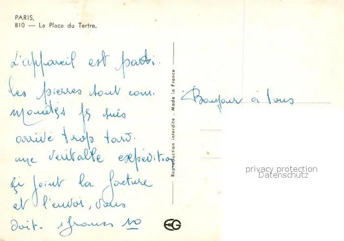 Paris Place du Tertre Paris postalisch nicht gelaufen nach 1965 Erhaltung siehe scans [FriedD77] Frierer