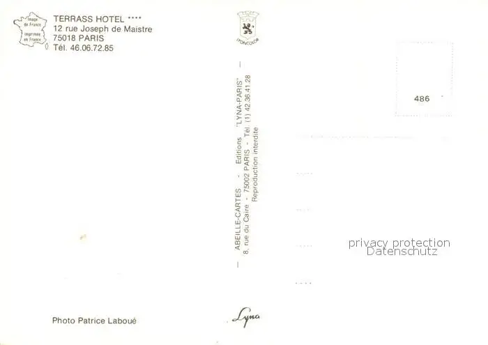 Paris Terrass Hotel Paris postalisch nicht gelaufen nach 1965 Erhaltung siehe scans [FriedD77] Frierer