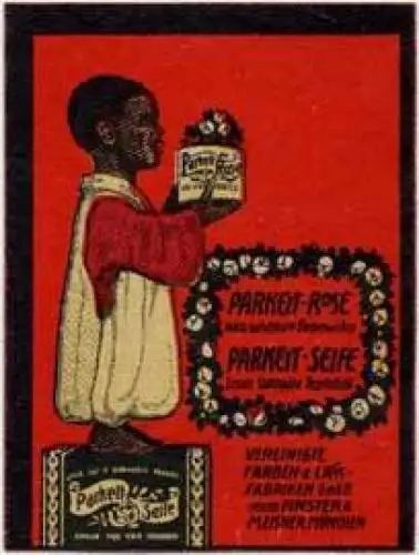 Parkett-Seife, Standorte: Augsburg, Straßburg/Elsass, Stuttgart, Nürnberg, Wels/Österreich , Größe/Zustand: 5x4 , guter Zustand, Original alte Reklamemarke die seinerzeit für die Werbung benutzt wurde