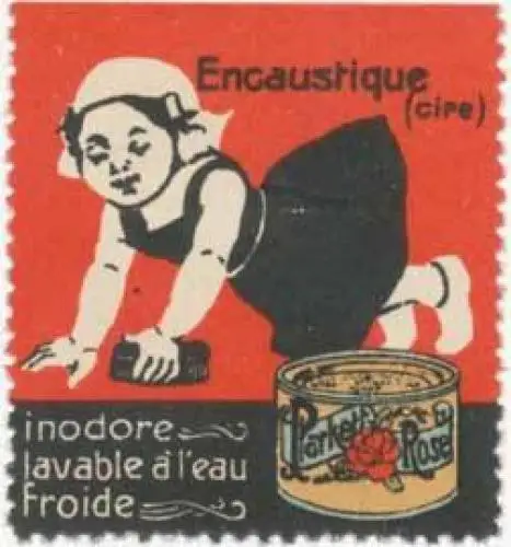 Encaustique, Standorte: Augsburg, Straßburg/Elsass, Stuttgart, Nürnberg, Wels/Österreich , Größe/Zustand: 4x4 , guter Zustand, Original alte Reklamemarke die seinerzeit für die Werbung benutzt wurde