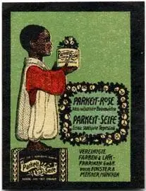 Nass wischbare Bodenwichse, Parkett Seife, Ersatz Stahlspäne Terpentinöl, Standorte: Augsburg, Straßburg/Elsass, Stuttgart, Nürnberg, Wels/Österreich , Größe/Zustand: 5x4 , guter Zustand, Original alte Reklamemarke die seinerzeit für die Werbung benutzt wurde