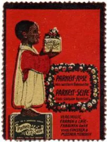 nass wischbare Bodenwichse, Parkett - Seife - Ersatz Stahlspäne, Terpentinöl, Standorte: Augsburg, Straßburg/Elsass, Stuttgart, Nürnberg, Wels/Österreich , Größe/Zustand: 5x4 , guter Zustand, Original alte Reklamemarke die seinerzeit für die Werbung benutzt wurde