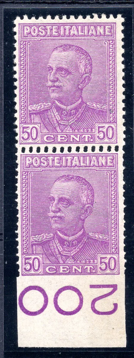 ** MNH - Parmeggiani Cent. 50 n. 225d Vertikaldrehmoment b. von f. mit ungezahntem Unterexemplar unten mit dreiseitiger Doppelverzahnung - Selten - Kat. euro 2.100 n. 253/18