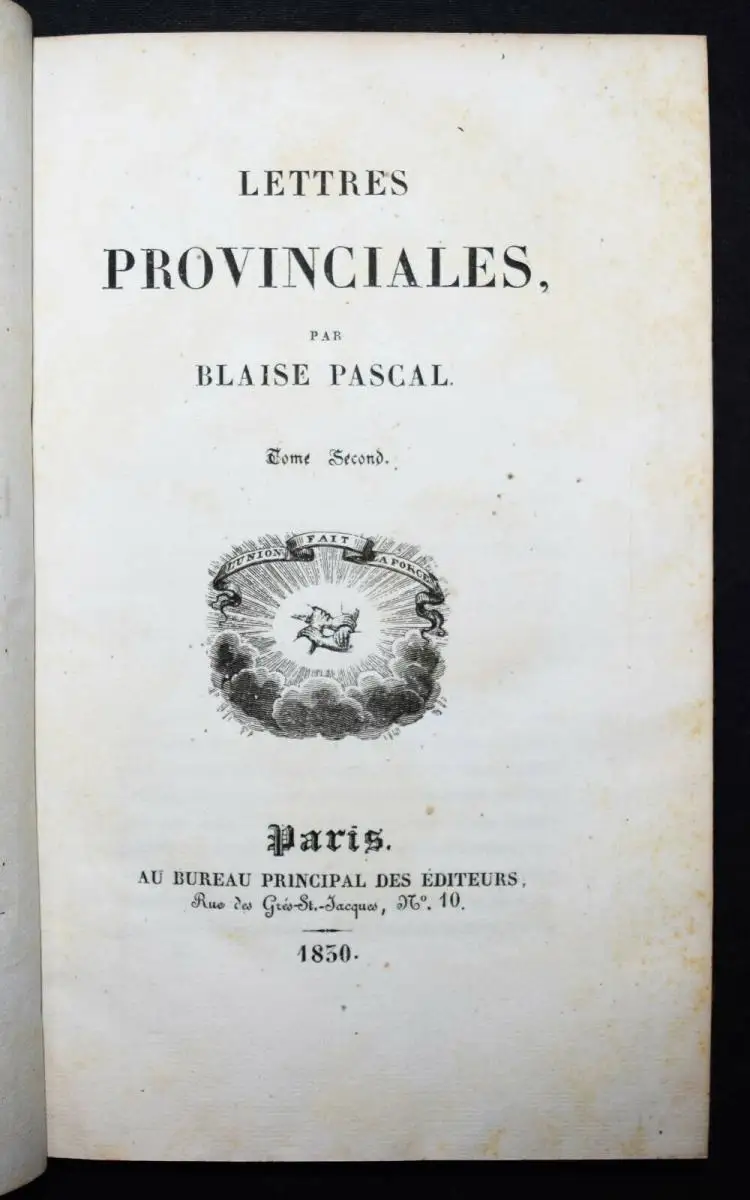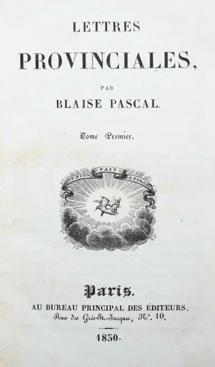 Lettres provinciales. 2 Bände. Paris, Au bureau principal des éditeurs