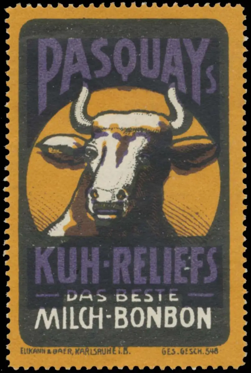 Milch-Bonbon, Druck: Ellkann & Baer, Karlsruhe, Größe/Zustand: 6x4 , Fehldruck, guter Zustand, Original alte Reklamemarke die seinerzeit für die Werbung benutzt wurde