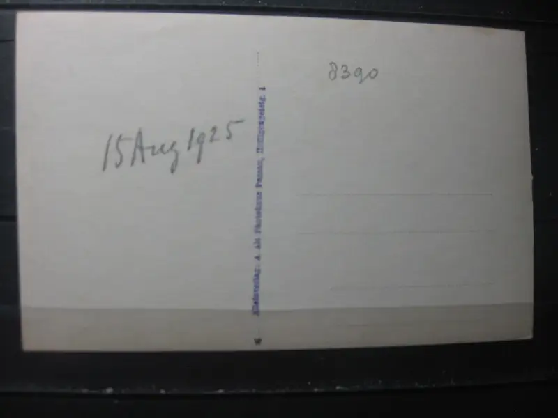 ca. 1925; Unschärfen, Spiegelungen, Verbiegungen, Verwerfungen sind allein durch das abfotografieren bedingt; Karte ist beidseitig abgebildet, Erhalt siehe Scan; ist das Foto qualitativ nicht aussagekräftig genug, kann es besseres Foto angefordert werden. Rückgabe bei Karten ist generell ausgeschlossen.