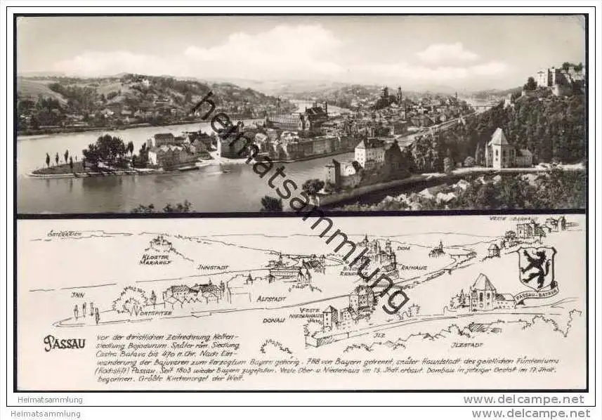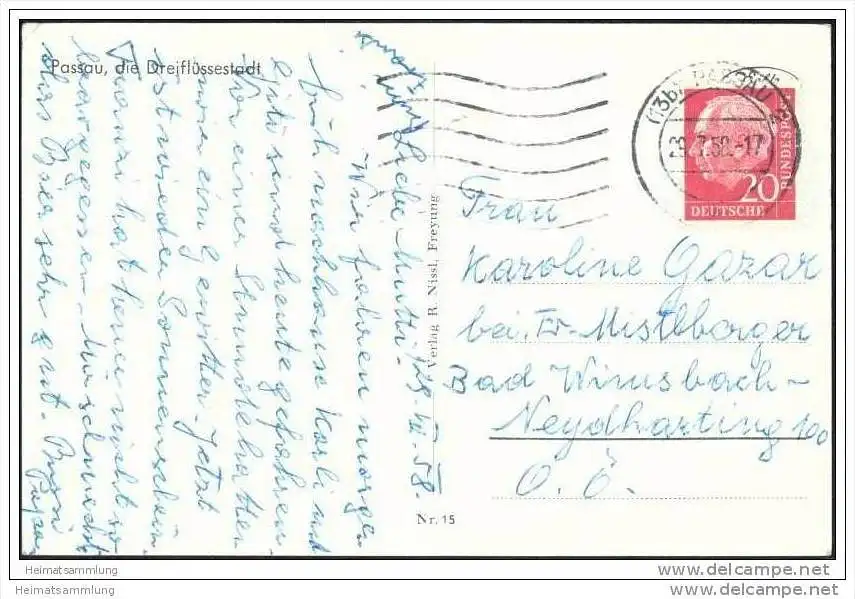 Passau - Dreiflüssestadt - Verlag R. Nissl Freyung - Ecken leicht bestossen (E3777) gel. 1958