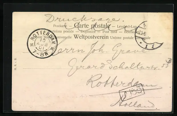 alte Ansichtskarte, gelaufen 1901, Briefmarke entfernt, Stempelspur, guter Zustand