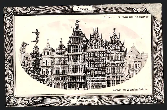 Passepartout-AK Anvers, Brabo et Maisons Anciennes