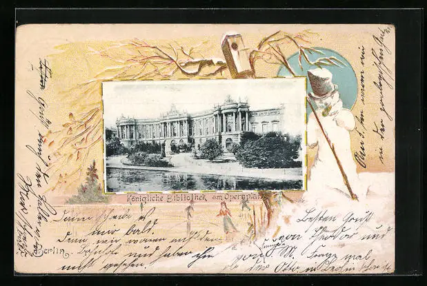 Passepartout-AK Berlin, Königliche Bibliothek am Opernplatz, Schneemann