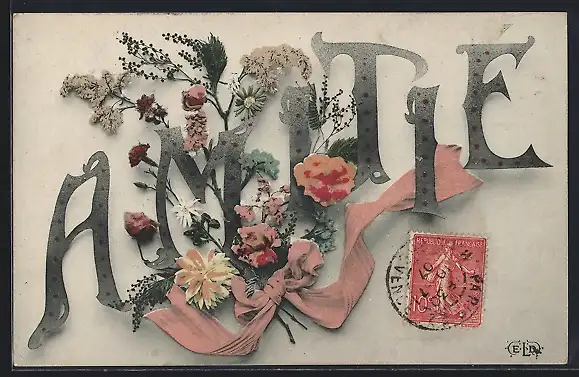 Passepartout-AK Boulogne, Amitie, Blumengrüsse