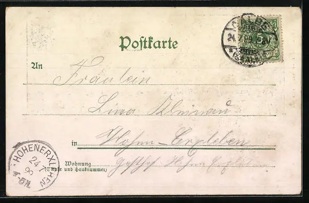 alte Ansichtskarte, gelaufen 1899, Ecken bestoßen, Stempelspur, guter Zustand