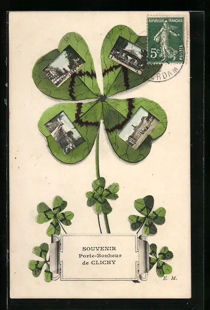 Passepartout-AK Clichy, Ortsansichten in einem Kleeblatt