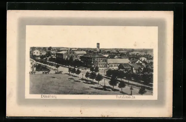 Passepartout-AK Dünaburg, Totalansicht mit Umgebung