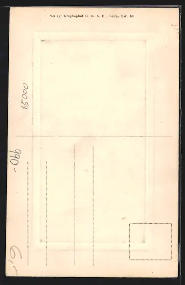 Personenbezogene Daten auf der Rückseite der Karte wurden durch blauen Textmarker unkenntlich gemacht. Die blauen Stellen sind auf die Vorderseite durchgeweicht und wirken sich negativ auf das Postkartenfoto aus