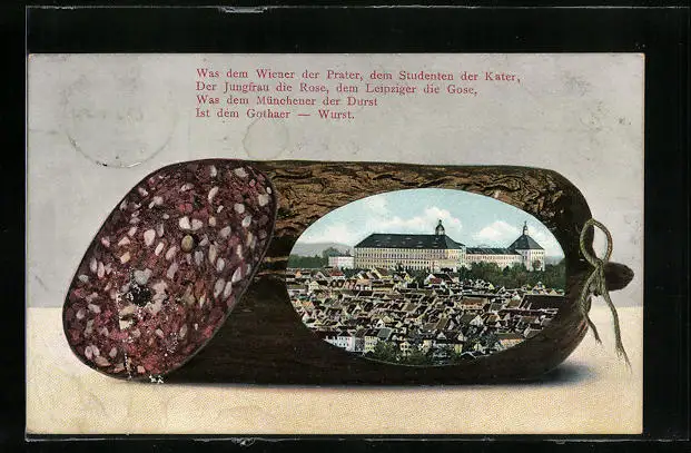Passepartout-AK Gotha, Ortsansicht in Blutwurst-Passepartout