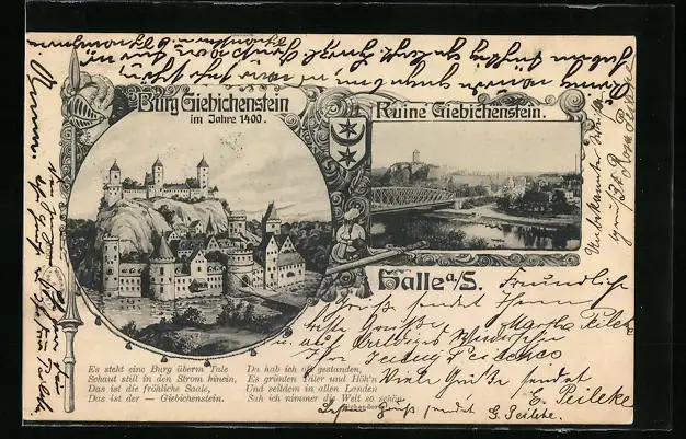 Passepartout-AK Halle a. S., Burg Giebichenstein im Jahr 1400, Ruine Giebichenstein