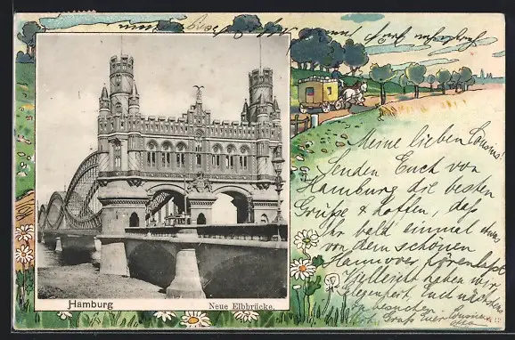 Passepartout-AK Hamburg-Rothenburgsort, Blick auf die neue Elbbrücke