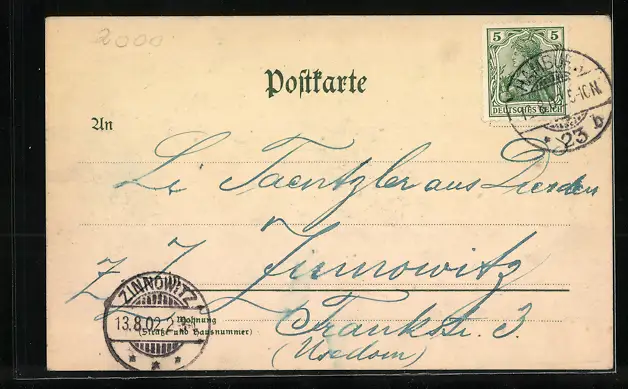 alte Ansichtskarte, gelaufen 1902, guter Zustand