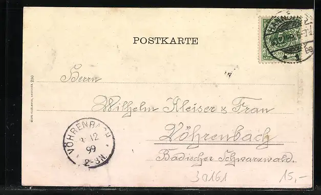 alte Ansichtskarte, gelaufen 1899, guter Zustand