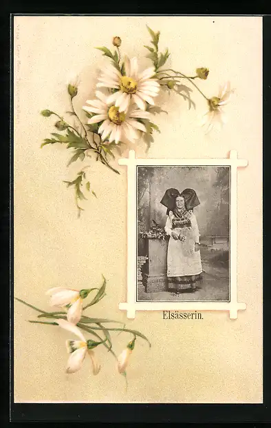 Passepartout-AK Hübsche Elsässerin in eleganter Trachtenkleidung