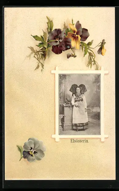 Passepartout-AK Hübsche Elsässerin in eleganter Trachtenkleidung