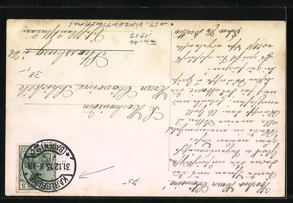 alte Ansichtskarte, gelaufen 1913, Eckknick oben rechts, guter Zustand