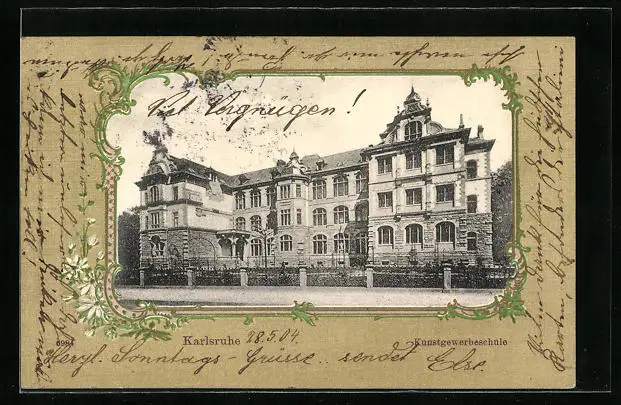 Passepartout-AK Karlsruhe, Kunstgewerbeschule, Strassenansicht