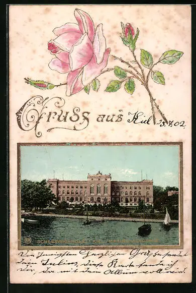 Passepartout-AK Kiel, Marine Akademie mit Flusspartie