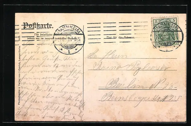 alte Ansichtskarte, gelaufen 1910, Bugspur diag. li. unten, Stempelspur, guter Zustand