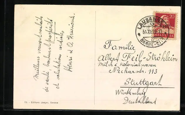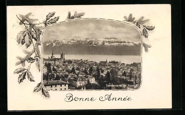 Passepartout-AK Lausanne, Teilansicht, Neujahrsgruss