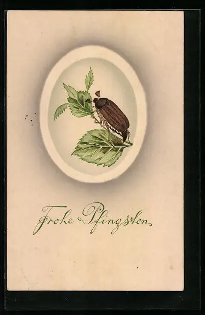 Passepartout-AK Maikäfer auf Birkenblatt, Pfingstgruss