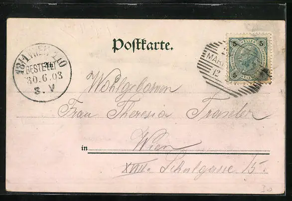 alte Ansichtskarte, gelaufen 1903, Eckknick oben li., guter Zustand