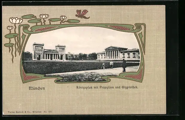 Passepartout-AK München, Königsplatz mit Propyläen und Glyptothek