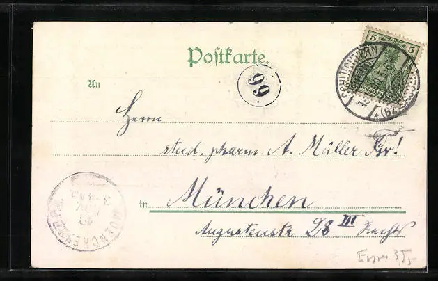 alte Ansichtskarte, gelaufen 1900, Stempelspur, guter Zustand