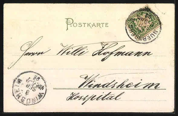 alte Ansichtskarte, gelaufen 1902, Eckknick u. Einriss oben li., guter Zustand