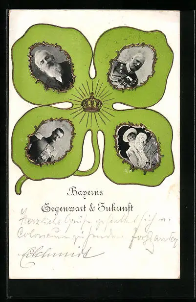 Passepartout-AK Prinzregent Luitpold, Portraits im Kleeblatt, Krone