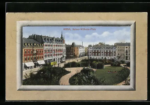 Passepartout-AK Riesa, Kaiser-Wilhelm-Platz aus der Vogelschau