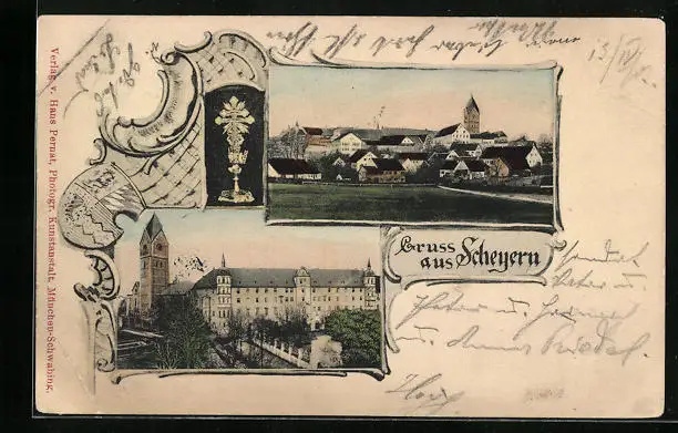 Passepartout-AK Scheyern, Teilansicht, Partie mit Kirche