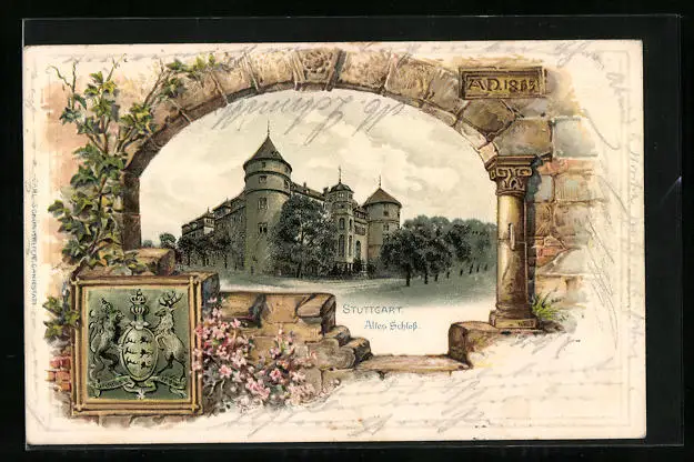 Passepartout-AK Stuttgart, Altes Schloss, Wappen