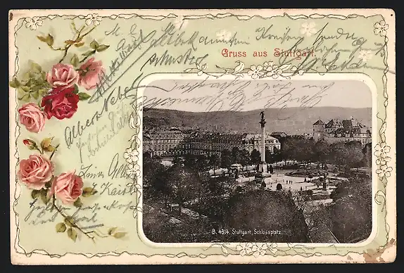 Passepartout-AK Stuttgart, Ortspartie mit Schlossplatz