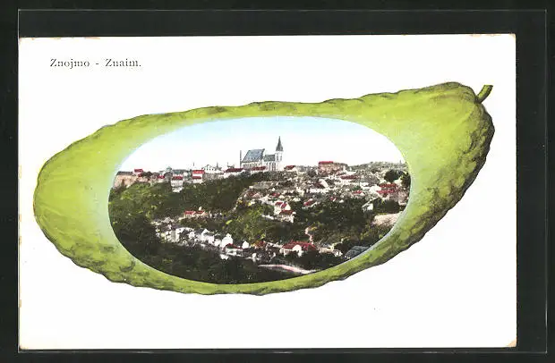 Passepartout-AK Znaim, Stadt in der Gurke