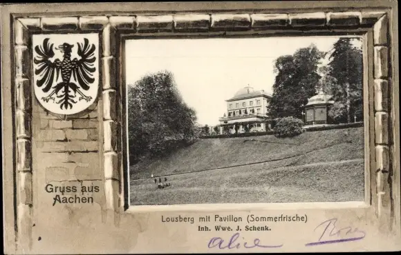 Passepartout Ak Aachen, Lousberg mit Pavillon, Wappen