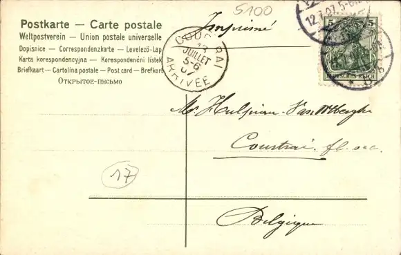 Zustand, siehe Scan, gelaufen, 1907 - ca 14 cm X 9 cm