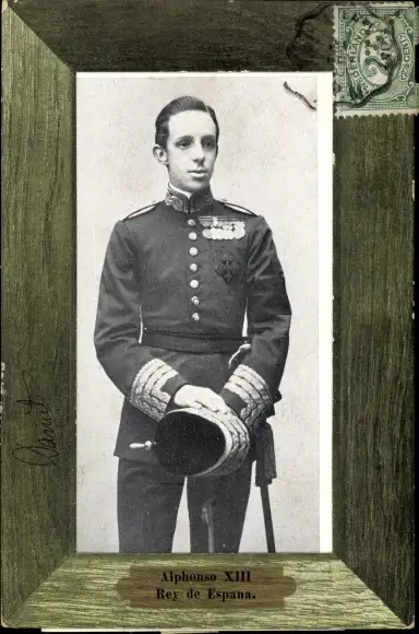 Passepartout Ak Alfons XIII, König von Spanien, Portrait, Uniform