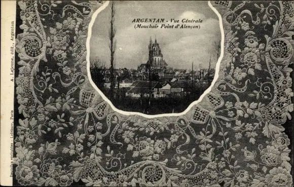 Passepartout Ak Argentan Orne, Vue Generale, Mouchoir Point d'Alencon