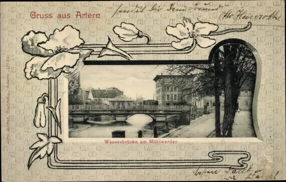 Passepartout Ak Artern an der Unstrut, Wasserbrücke am Mühlwerder