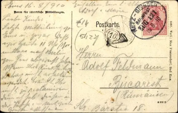 Zustand, siehe Scan, gelaufen, 1910 - ca 14 cm X 9 cm