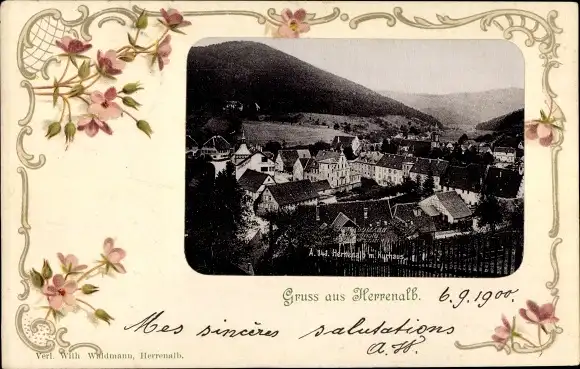 Passepartout Ak Bad Herrenalb im Schwarzwald, Teilansicht mit Kurhaus