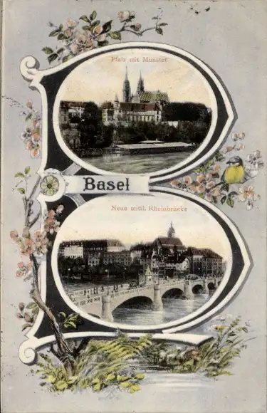 Passepartout Ak Bâle Basel Stadt Schweiz, Münster, Rheinbrücke